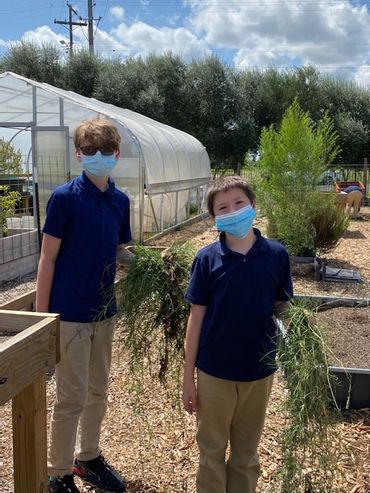 The Aquaponics system uses pumps which route the waste water generated by the fish through a medium where nitrifying bacteria break down the waste. The bacteria produce nitrites and nitrates which are then used by the plants to grow. The water is effectively cleaned and recycled to the fish. Other than water lost to evaporation, the system is self-sustaining. The current system at St. Mary’s loses approximately 5 gallons a day to evaporation. As part of the GREEN Garden program at St. Mary’s, the school is investigating a water reclamation system, to make the system even more sustainable. Nick Hernandez, the FTS Liaison, has been experimenting with different plants including microgreens and currently has an overabundance of mint.