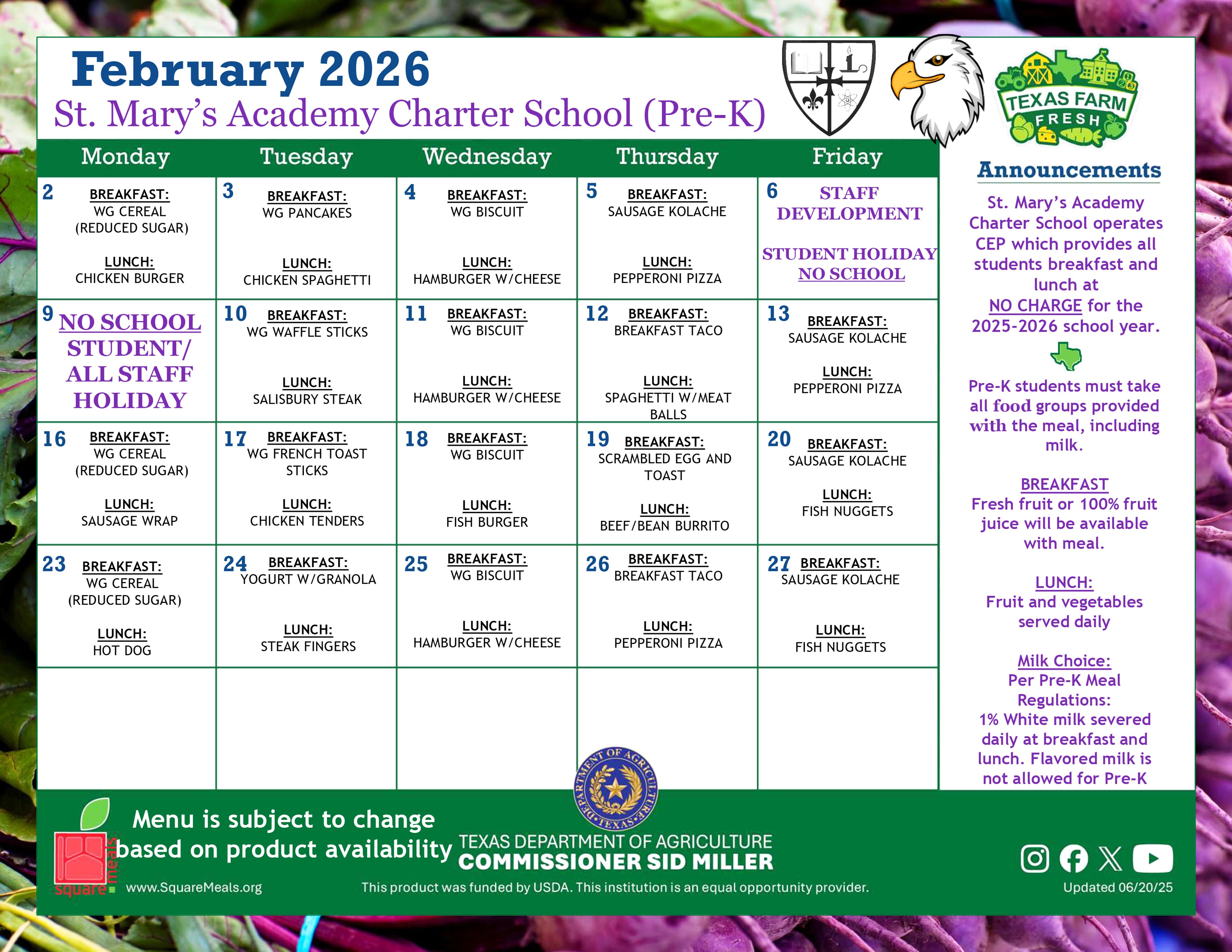 In accordance with federal civil rights law and U.S. Department of Agriculture (USDA) civil rights regulations and policies, this institution is prohibited from discriminating on the basis of race, color, national origin, sex (including gender identity and sexual orientation), disability, age, or reprisal or retaliation for prior civil rights activity. Program information may be made available in languages other than English. Persons with disabilities who require alternative means of communication to obtain program information (e.g., Braille, large print, audiotape, American Sign Language), should contact the responsible state or local agency that administers the program or USDA’s TARGET Center at (202) 720-2600 (voice and TTY) or contact USDA through the Federal Relay Service at (800) 877-8339.
